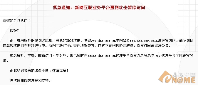 新網(wǎng)互聯(lián)公告截圖
