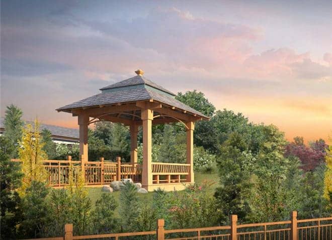 在搭建涼亭之前,要首先測量自家院子的大小,是否還有空間可以容納下一個涼亭。涼亭的大小也需要與院子大小比例相協(xié)調(diào),這樣更相得益彰。在院子里為涼亭選址時,建議是選擇平地活著是臨水的地方,有些獨棟別墅也可以建造在半山坡上。
