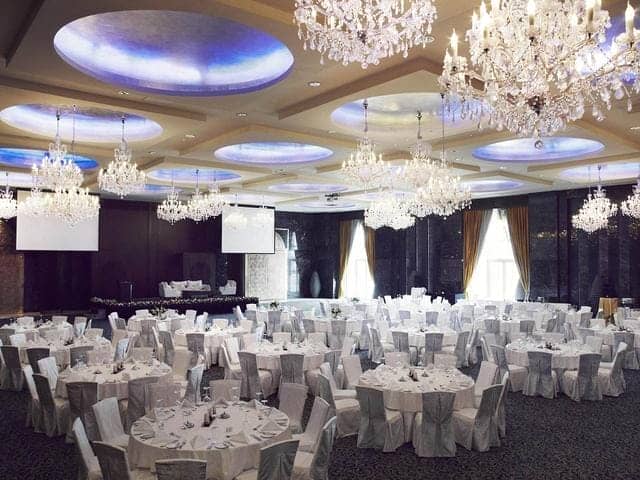 (3)酒店婚宴區(qū):假如這是酒店的主要的經(jīng)濟(jì)體系,那就可以將裝飾燈具充分發(fā)揮在這些地方,利用好這些裝飾品位新人增添整體的氛圍。婚宴區(qū)同樣在高度上還是有要求的太矮顯得壓抑,空間的大小決定桌椅的擺放量,解決方法可以采用隔斷的方案。